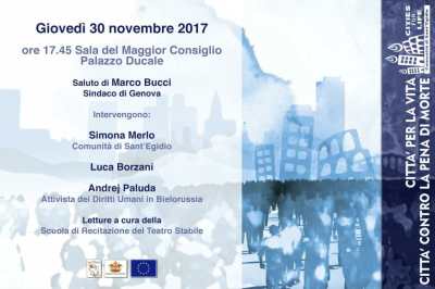 Anche nel 2017 il Comune di Genova aderisce, su invito della Comunità di Sant’Egidio, alla campagna delle “Città per la vita” contro la pena di morte, dando voce alla lotta per i diritti civili in Bielorussia, l’ultimo stato d’Europa e dello spazio post-sovietico dove ancora sopravvive la pena capitale.