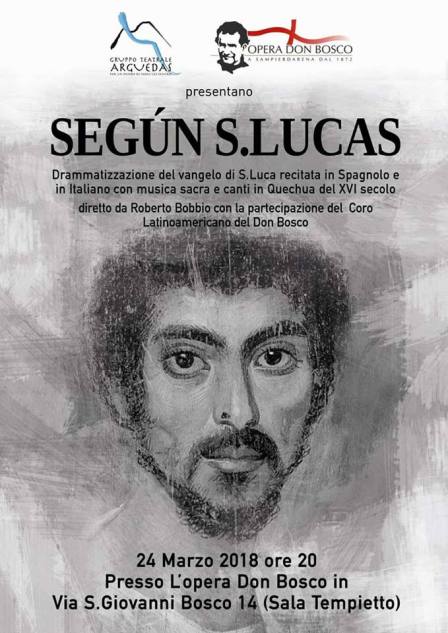 Drammatizzazione del Vangelo di Luca recitata in Italiano, Spagnolo con canti in Quechua 24 marzo ore 20:00 Genova, Opera Don Bosco. Vía G.Bosco 14 Sala Tempietto (Sampierdarena)