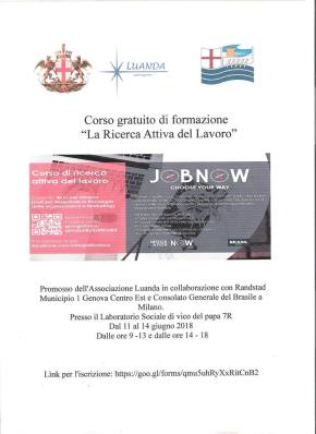 Iniziativa promossa dell’associazione Luanda in collaborazione con Randstad, Municipio I Genova Centro Est e Consolato Generale del Brasile a Milano. Il Corso è tenuto della Dottoressa Marcela Oliveira, Specialista in collocamento professionale. Il incontro si terrà nel i Laboratorio Sociale di Vico Papa 7r.