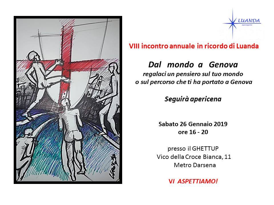 VIII Incontro annuale dell’Associazione Luanda, sabato 26 gennaio ore 16/ 20, presso il Ghettup – vico della croce bianca, 11 per ricordare la protagonista della nostra associazione nel giorno della sua nascita e illustrare le attività dell’Associazione svolte durante l’anno 2018 e presentare i nuovi progetti per il 2019.