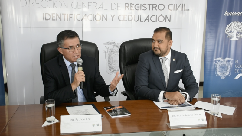 desde la izquierda) Ing. Patricio Real, Viceministro de Telecomunicaciones, y el Lic. Vicente Taiano, Director de Registro Civil, Identificación y Cedulación