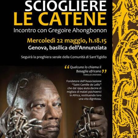Genova.- “Sciogliere le Catene” Incontro con Gregoire Ahongbonon – Mercoledi’ 22 maggio ore 18,15 – Chiesa dell’Annunziata