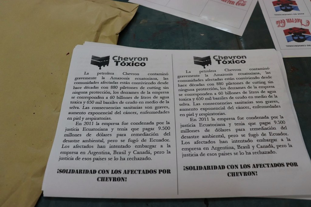 El caso de la UDAPT, Unión de afectadas/os por Texaco contra Chevron, es el caso de justicia ambiental más grande a nivel mundial. Iniciado en 1993 en defensa de 30.000 indígenas y campesinos en Ecuador, Chevron fue sentenciada en 2011 a pagar USD 9.5 billones, a ser utilizados en la reparación de los daños ambientales, culturales y sociales causados en la Amazonía Ecuatoriana entre 1964 y 1992. Sin embargo, en 2018 Chevron ganó un caso presentando ante la ante la Corte Permanente de Arbitraje de la Haya utilizando ISDS contra Ecuador, aludiendo que el Estado había violado acuerdos de inversión bilaterales con los Estados Unidos. Los árbitros dictaron al Estado ecuatoriano la obligación de pagar a Chevron una compensación financiera y declarar nula la sentencia a favor de las comunidades afectadas, lo cual significa una violación a su constitución. Esto sentaría un precedente internacional de alto riesgo dado que establece a dicha corte arbitral por encima de las cortes nacionales. En una iniciativa promovida por la Campaña Global para reivindicar la soberanía de los Pueblos, desmantelar el Poder Corporativo y poner fin a la impunidad, en alianza con miembros de la Campaña Europea Derechos para los Pueblos, reglas para las transnacionales – Stop-ISDS”, y otras redes a nivel internacional, en estrecha coordinación con la Unión de Afectado/as por Chevron-Texaco en Ecuador (UDAPT), más de 250 organizaciones, movimientos sociales, uniones de trabajadores, piden mediante una carta dirigida al presidente Ecuatoriano Lenin Moreno que rechace el fallo arbitral a favor de Chevron y declare su apoyo a las comunidades afectadas. Este 21 de mayo, Día Global #AntiChevron, en apoyo a la importante movilización desplegada en Ecuador por las comunidades afectadas, grupos locales en 10 países de Europa, América Latina y Estados Unidos se movilizan y entreganla carta a los representantes del gobierno ecuatoriano. La carta denuncia la impunidad corporativa de Chevron en Ecuador y otros países (Argentina, Brasil, Kazakhstan, Estados Unidos e Indonesia), además de señalar las significativas implicaciones de las petroleras como Chevron en el calentamiento global. El pueblo ecuatoriano y personas alrededor del mundo harán frente a casos de ISDS como quel de Chevron contra Ecuador, y se posicionan en favor del establecimiento de un instrumento internacional legalmente vinculante sobre las empresas transnacionales y los derechos humanos en el marco de las Naciones Unidas.