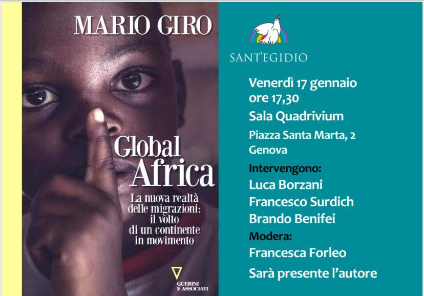 Génova. – Viernes 17 de Enero a las 17:30 en la Sala Quadrivium (piazza Santa Marta, 2). Se llevará a cabo la presentación del libro del último libro de “Global Africa La nueva realidad de la Migración: La cara de un Continente en Movimiento”.