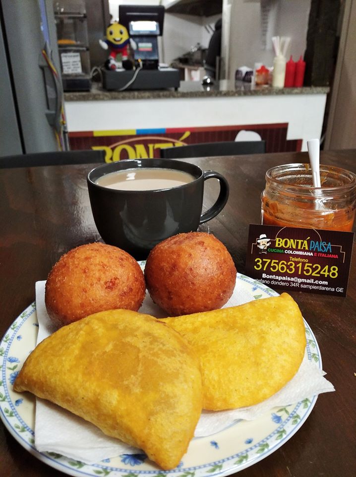 Boñuelos y empanadas tradizionales colombianas. Bontá Paisa se encuentra en el barrio de Sampierdarena de la ciudad de Génova