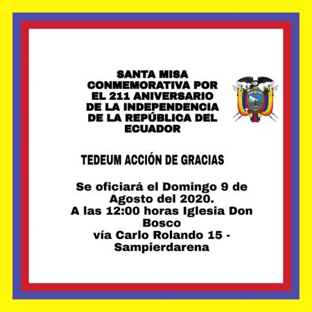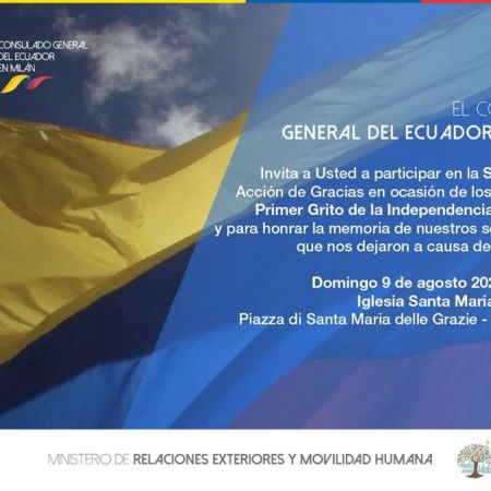 Consulado General del Ecuador en Milán.- Conmemora los 211 años del Primer Grito de América con una misa y un evento virtual