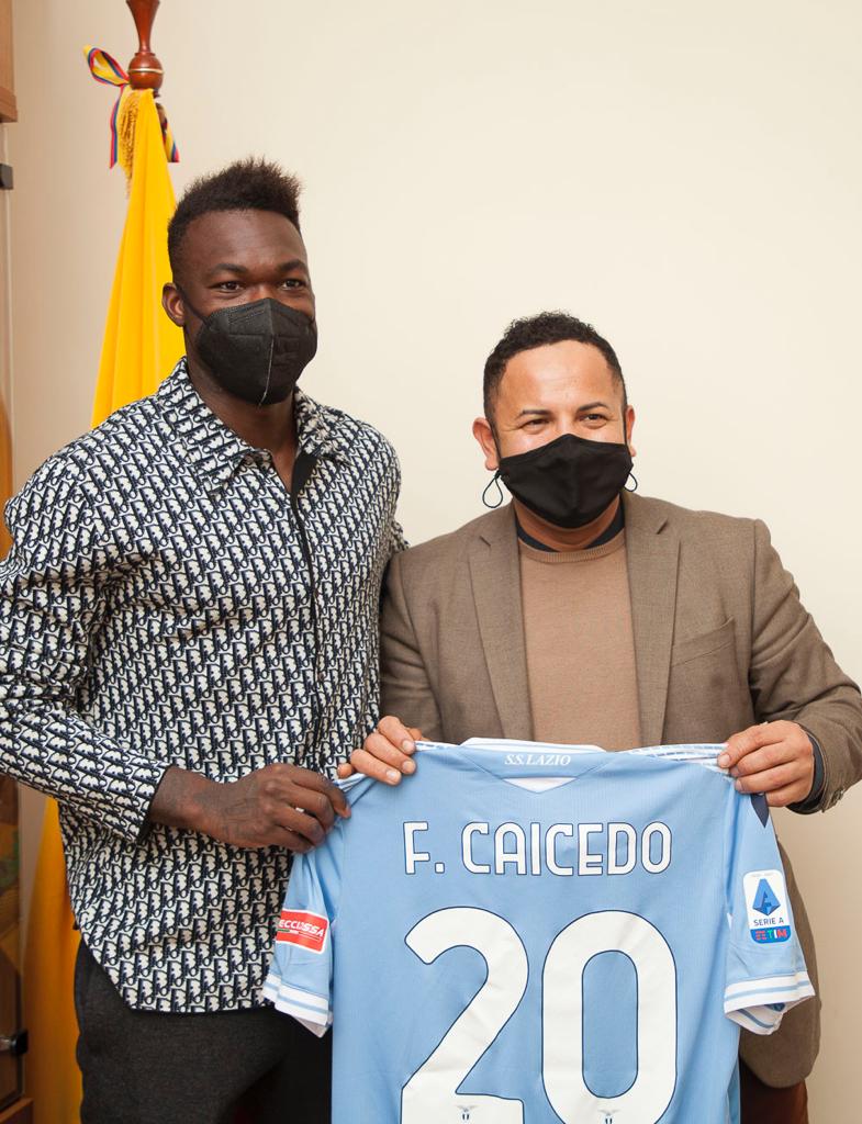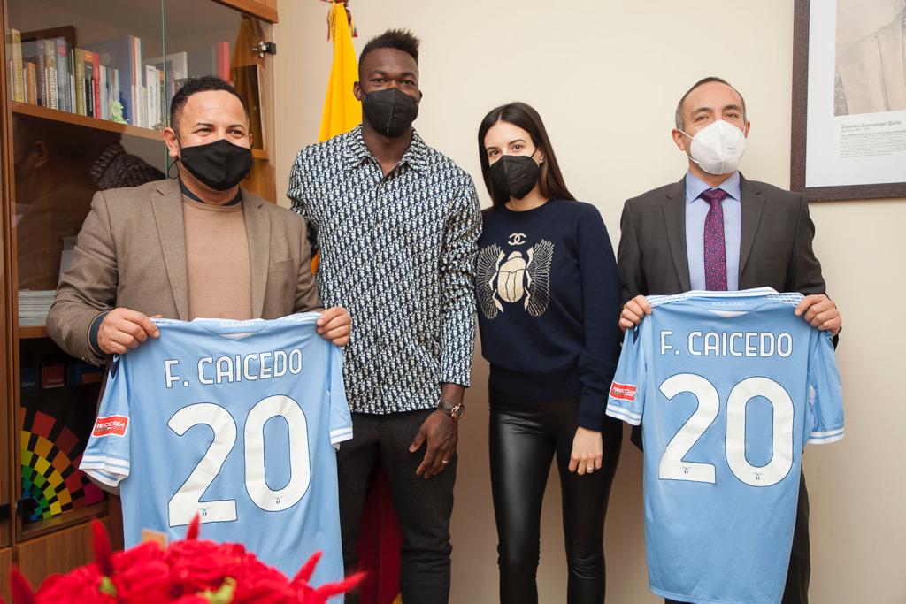 Por su parte el futbolista de la Lazio Felipe Caicedo, en el encuentro e intercambio, donó camisetas de la selección Lazio con el número veinte al diseñador Cristian Caputi