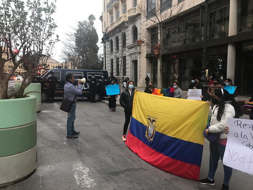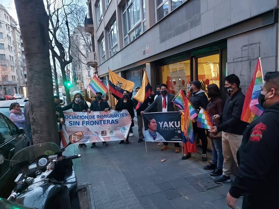 Simpatizantes del candidato a la Presidencia de la República del Euador Yaku Perez del Partido Unidad Popular lista 2 y el Movimiento de Unidad Plurinacional Pachakuty lista 18, organizaron manifestaciones en algunas ciudades de Europa como Milán, Barcelona.