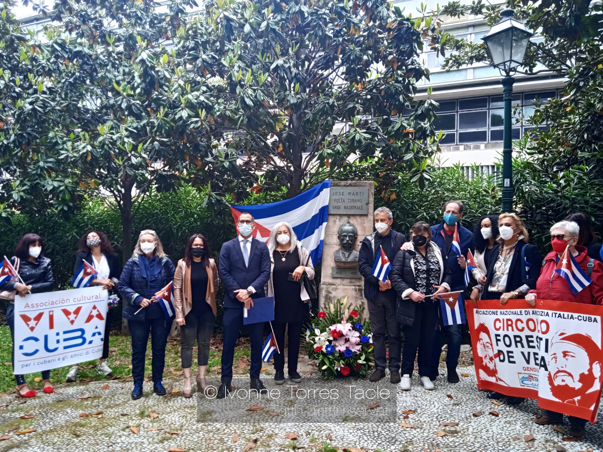 Dicho homenaje, contó con la presencia de diferentes colectivos como CONACI, Asociación Línea Condivisa, amigos en general. Así mismo contó con la presencia LLanio Gonzalez, Cónsul General de Cuba en Milán y el Consejero Regional Gianni Pastorino de Línea Condivisa