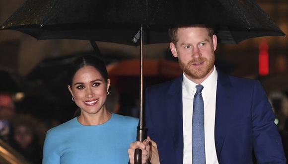 En esta foto de archivo, el príncipe Harry y Meghan Markle llegan para asistir a los premios Endeavour Fund Awards en Mansion House en Londres el 5 de marzo de 2020. (Foto de DANIEL LEAL-OLIVAS / AFP).