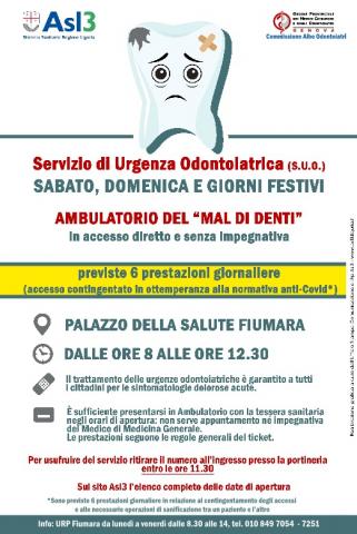 Attivo il servizio di #urgenzeodontoiatriche a partire da sabato 10 luglio 2021 presso il Palazzo della Salute di Fiumara il sabato, la domenica e nei giorni festivi.