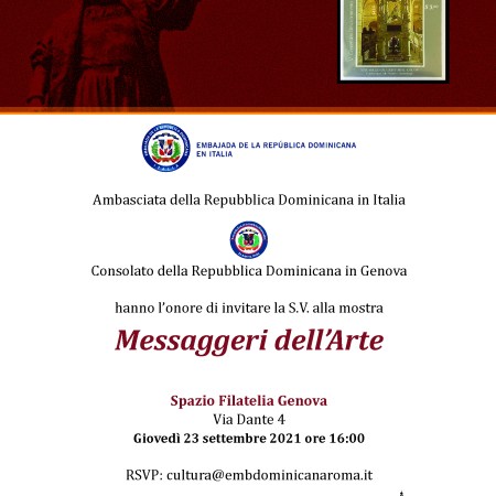 Génova.- La Embajada y el Consulado Dominicano invitan: A la exposición “Mensajeros del Arte” Desde el 23 de septiembre al 12 de octubre.