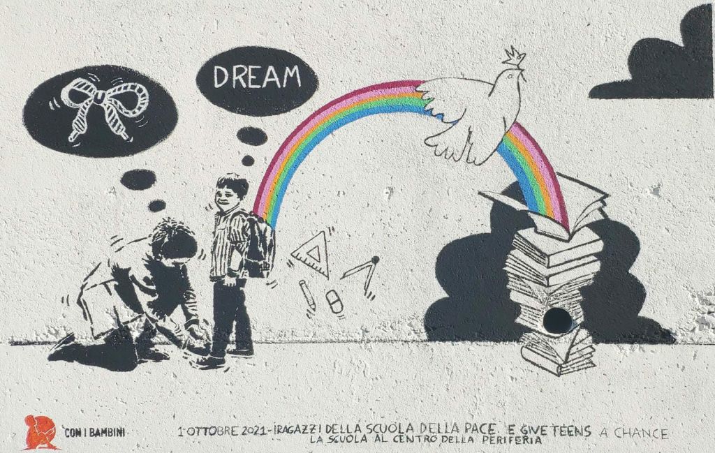 “La ciudad empieza en las afueras” es el nombre del mural que ayer fue inaugurado por los alumnos de la Escuela de Paz de la Comunidad de Sant’Egidio al Cep di Pra ‘