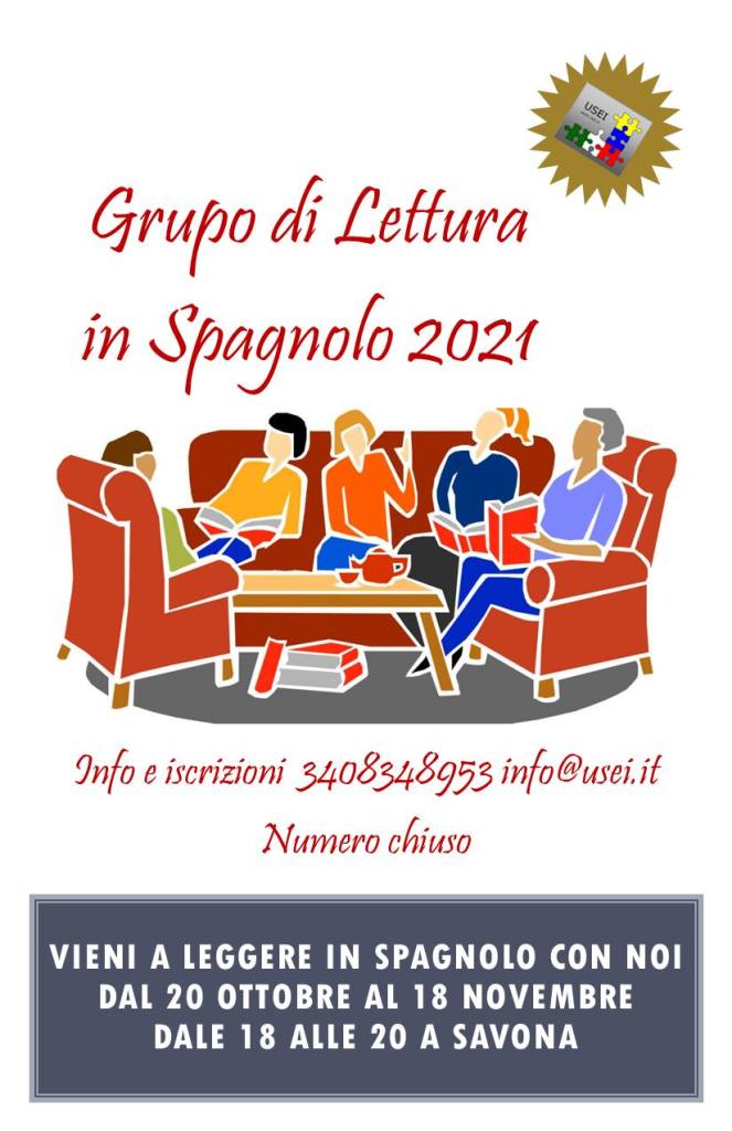 Mercoledì 20 ottobre 2021, presso la sede dell’USEI-APS a Savona, in via Giacchero snc (angolo Corso Colombo) riparte l’edizione 2021 del “Gruppo di Lettura in Spagnolo”.I gruppi di lettura fanno parte delle attività dell’USEI-APS volte a riunire persone con la passione per la lingua di Cervantes, dove attraverso la lettura di libri di rinomati autori di lingua spagnola, viene stimolato l’arricchimento del proprio vocabolario, il contenuto viene analizzato e infine viene proposta la propria interpretazione.