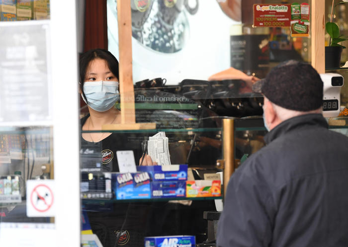 La titolare asiatica di un bar di Milano ascolta la richiesta di un cliente, Milano, 23 febbraio 2021.ANSA/DANIEL DAL ZENNARO