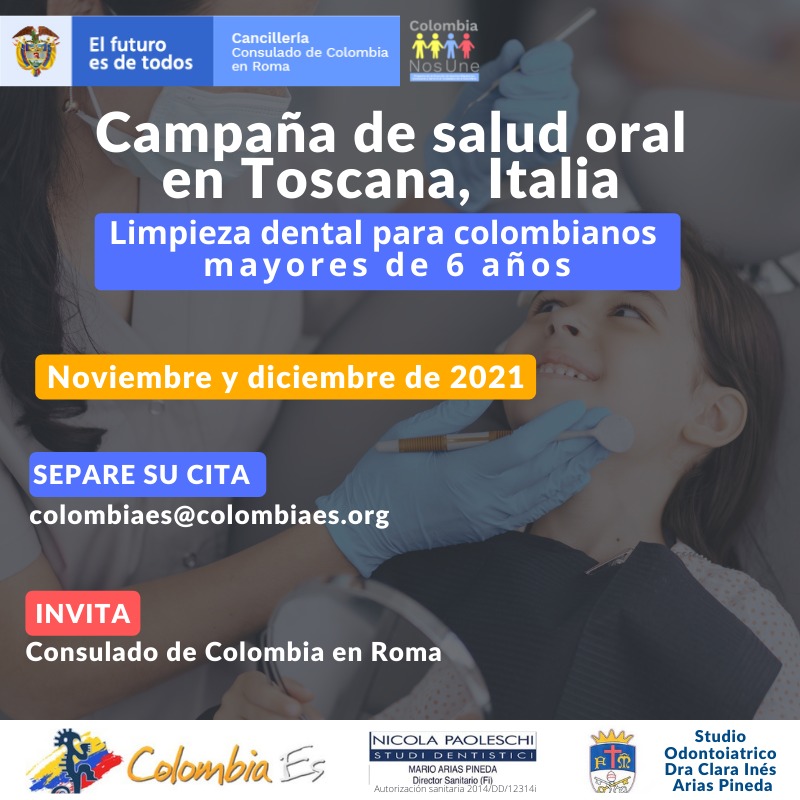 Toscana.- Partió desde el 1 de Noviembre la campaña ‘ Campaña de Salud Oral’ a favor de los ciudadanos colommbianos que durará hasta el l0 de diciembre.