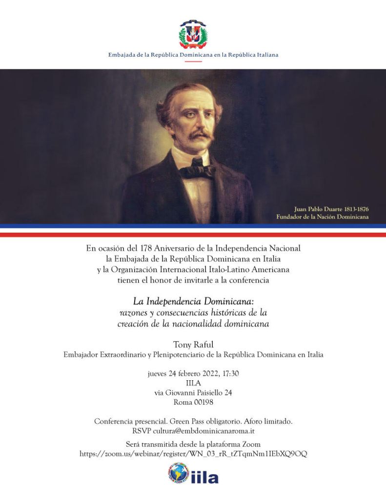 17 febbraio 2022 Ivonnetorrestacle Roma.- Embajador Tony Raful, dictará Conferencia en Conmemoración al 178 años de Independencia de República Dominicana. Condividi: Fai clic per condividere su X (Si apre in una nuova finestra) X Fai clic per condividere su Facebook (Si apre in una nuova finestra) Facebook Fai clic per condividere su WhatsApp (Si apre in una nuova finestra) WhatsApp Altro Fai clic qui per condividere su LinkedIn (Si apre in una nuova finestra) LinkedIn Fai clic per condividere su Telegram (Si apre in una nuova finestra) Telegram Mi piace Caricamento... Correlati