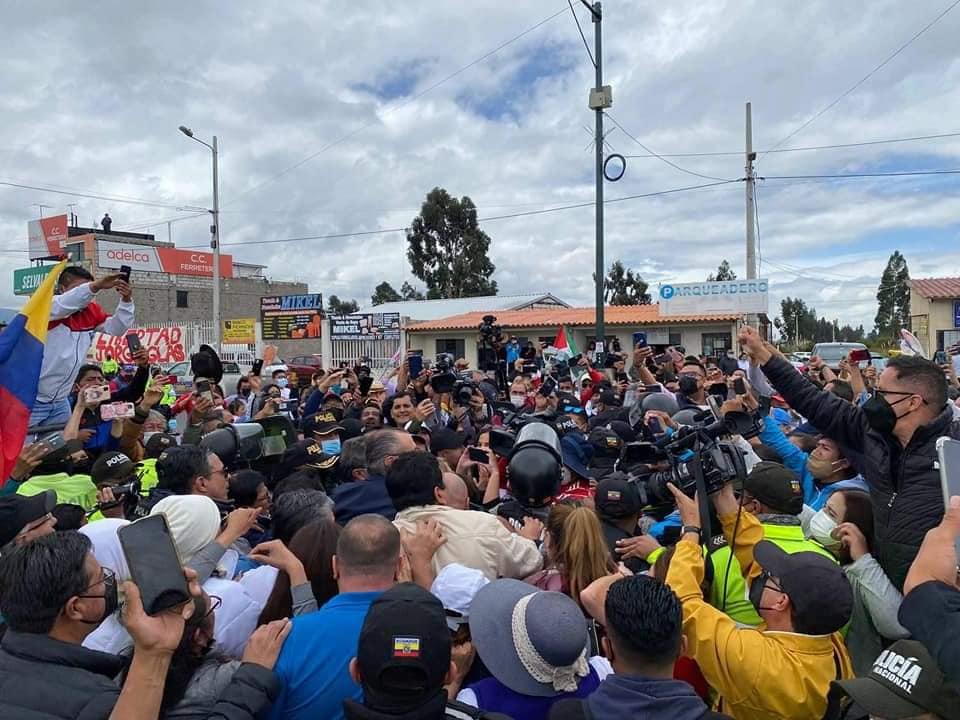 Caminó alrededor de 300 metros para saludar y tomarse fotos con sus seguidores. Luego se subió a un carro de color plateado, marca Toyota Forturner, que lo esperaba en la avenida, desde donde se puede ver el centro carcelario.