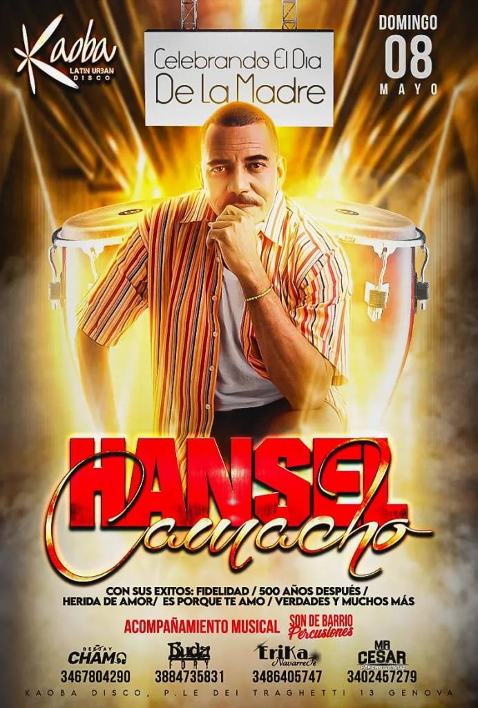 Hansel Camacho Santos, conocido artísticamente como Hansel Camacho, es un cantante y compositor de salsa colombiana. Con éxitos como: “Verdades”, “A pesar de la distancia”, “Dale duro”, “Te mando un beso”, entre otros. También resalta su actuación en novelas como: Azúcar, La Potra Zaina, La hija del Mariachi y en las películas El Carro y Perro Come Perro.