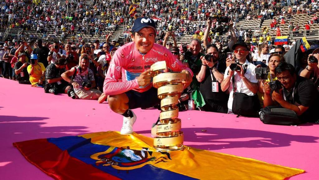En 2018, tras terminar tercero en la Semana Internacional Coppi y Bartali y ganar una etapa y la clasificación final de la Vuelta a Asturias, es protagonista de un buen Giro de Italia: en la Corsa rosa gana la etapa con llegada a Montevergine di Mercogliano, convirtiéndose así en el primer ecuatoriano en ganar una etapa en un gran Giro, y concluye en el cuarto puesto de la general, segundo mejor joven.Tras el Giro participa en la Vuelta a España, aunque sin posiciones importantes, y en los campeonatos del mundo de Innsbruck. En 2019, tras comenzar la temporada en Sudamérica, se confirmó en la Vuelta a Asturias, con un éxito de etapa y la victoria final de la prueba . Luego comenzó el Giro de Italia como co-capitán del equipo junto con Mikel Landa, pero no siendo considerado entre los favoritos para el podio final. Inmediatamente mostró buena forma y triunfó en la cuarta etapa, con una acción de finisseur en la llegada a Frascati frente al velocista Caleb Ewan, y luego repitió en la decimocuarta etapa en Courmayeur, solo después de un sprint en Colle San Carlo: [20] fue en Courmayeur donde se convirtió en el primer ecuatoriano en vestir la camiseta rosa como líder de la clasificación general que llevará hasta la llegada final a la Arena de Verona.