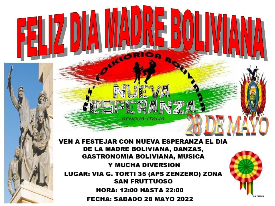 En la ciudad de Génova, la Asociación Nueva Esperanza, promueve a través de esta, las tradiciones Bolivianas, como el folklor, costumbres y tradiciones. En este caso el festejo del Día de la Madre Boliviana, dedicados a las madres que han dejado en Bolivia, y a las mujeres bolivianas que viven, trabajan en esta ciudad.