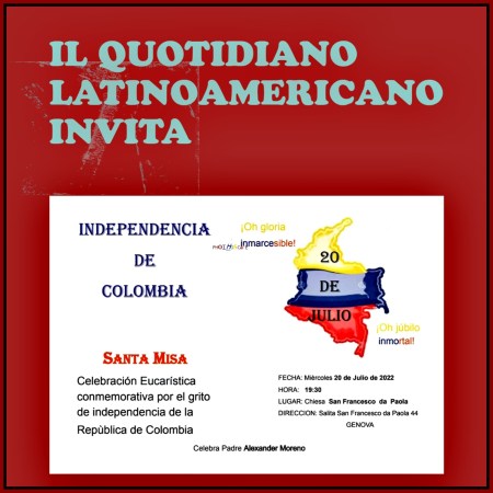 Génova.- La comunidad Colombiana Celebra con una Misa los 212 años de Independencia de la República de Colombia