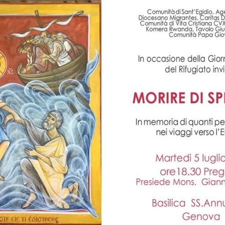 Preghiera Morire di Speranza in memoria di quanti perdono la vita nei viaggi verso l’Europa.