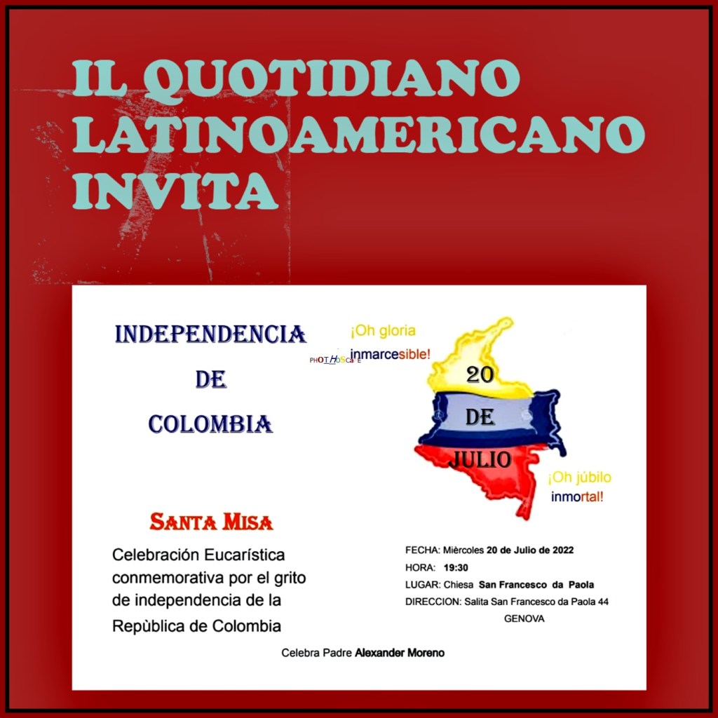 Génova.- La comunidad colombiana residente en la ciudad de Génova, conmemorará los 212 años de Independencia de la República de Colombia, con una misa que celebrará el Padre colombiano Alexander Moreno, el próximo miércoles 20 de Julio a las 19:30 en la Iglesia de San Francesco de Paola.