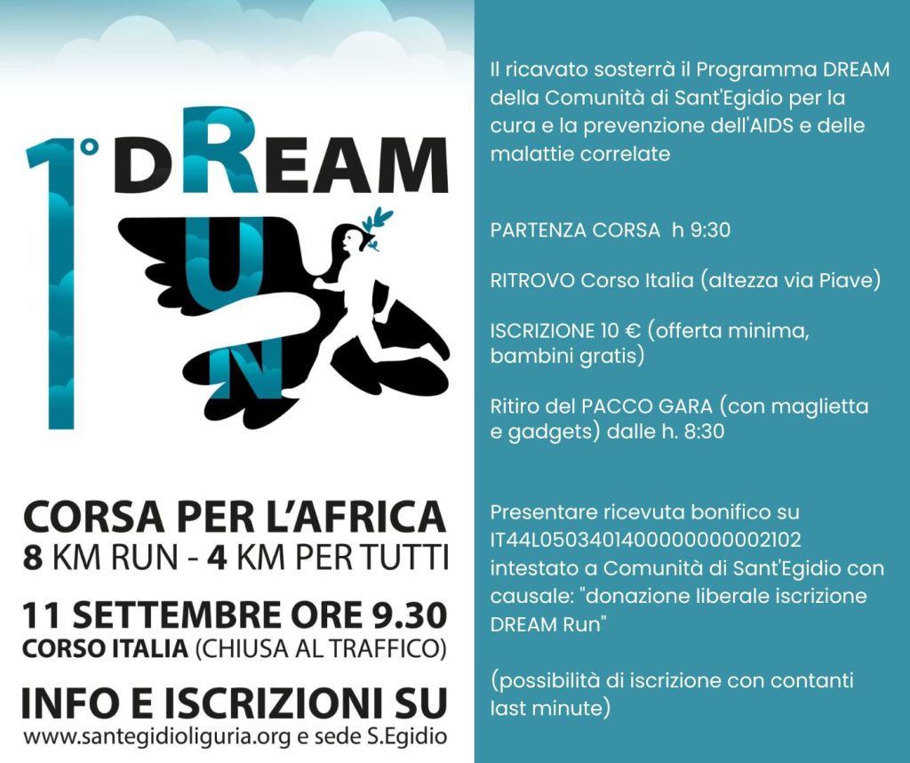 Domenica 11 settembre si terrà a Genova, in Corso Italia, la corsa per l’Africa DREAM run a sostegno del programma DREAM della Comunità di Sant’Egidio per la lotta all’AIDS e alla malnutrizione in 10 paesi africani.