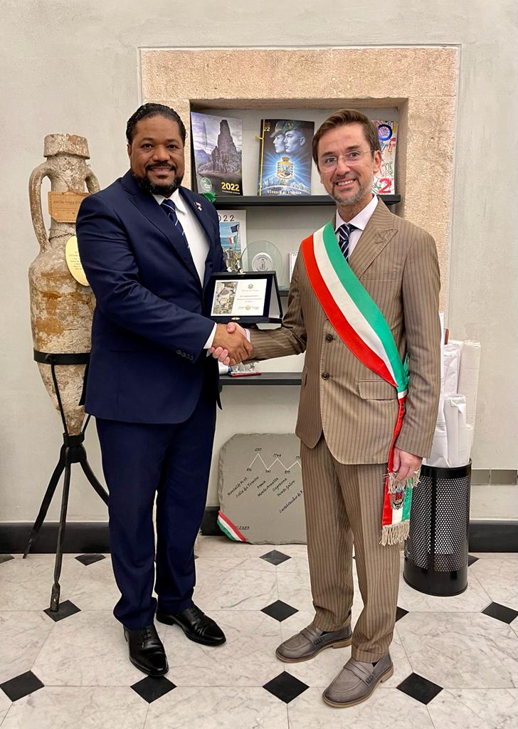 El Cónsul General de la República Dominicana en Génova, el Lic. Nelsón Carela Luna realizó una visita oficial al primer ciudadano de la cuidad de Loano, Lic. Luca Lettieri, en ocasión de la victoria de Mariela Nuñez, Miss Liguria en Italia 2022.
