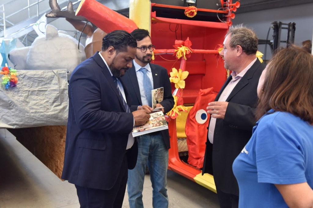 En horas de la mañana la primera autoridad dominicana se desplazó hacia la ciudad de Loano donde como primera actividad realizó un recorrido a los bodega de la asociación Vecchia Loano – Carnevale ed eventi, misma que organizó la pre-selección y sucesivamente la final regional de Miss Liguria en Italia el domingo pasado. El Cónsul Dominicano fue acogido por el presidente de la mencionada organización, el Lic. Agostino Delfino, artistas, maestros y miembros de la asociación.