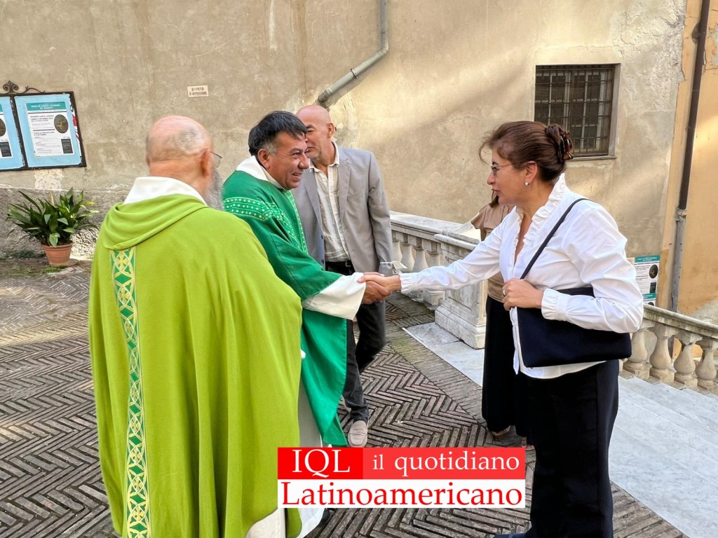 En horas de la tarde también fue acogida en la Iglesia Santa Caterina de Génova, por Padre Vittorio Casalino, Padre Juan Alberto Ramos, ( el primer parroco ecuatoriano en esta ciudad ) y Padre Angel de nacionalidad peruana. A dar la bienvenida fue Padre Vittorio, quien comentó ‘ Hoy tenemos un domingo especial recordamos el Homenaje a Santa Cetrerina, patrona de esta Iglesia y contamos con la presencia de la ViceMinistra’ por otra parte el padre Juan Ramos, concluyó con un mensaje del Padre ‘A nombre de la comunidad ecuatoriana que resiede en la ciudad de Génova, le damos la bienvenida, para nosotros su presencia es importante trabajar con las instituciones y tener un el privelegio de compartir con usted este tiempo en nuestra Iglesia’