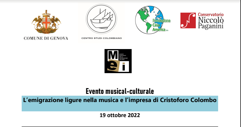 Fondazione Casa America è lieta di invitarla all’evento musical-culturale “L’emigrazione ligure nella musica e l’impresa di Cristoforo Colombo”.