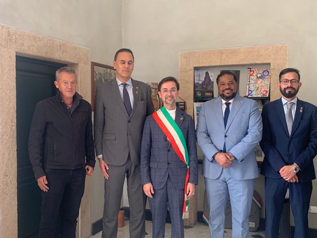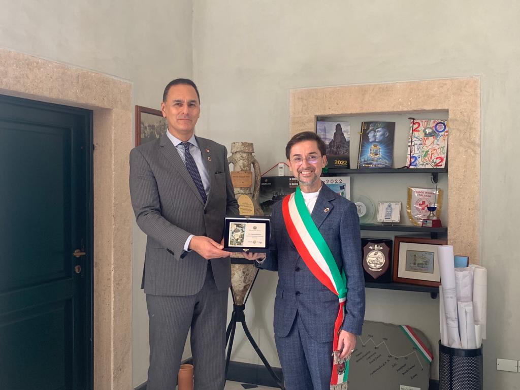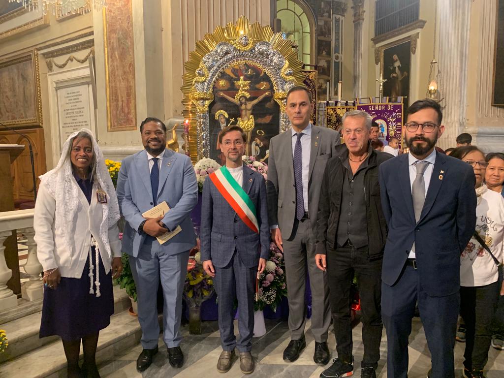 A dar bienvenida a la ciudad fue el Alcalde Luca Littieri, a las autoridades consulares Lcdo Nelsón Carela, Cónsul General de la República Dominicana y Lcdo Carlos Tavera Cónsul General de la República el Perú, acompañado del Vice Sindaco GianLuigi Bocchi.