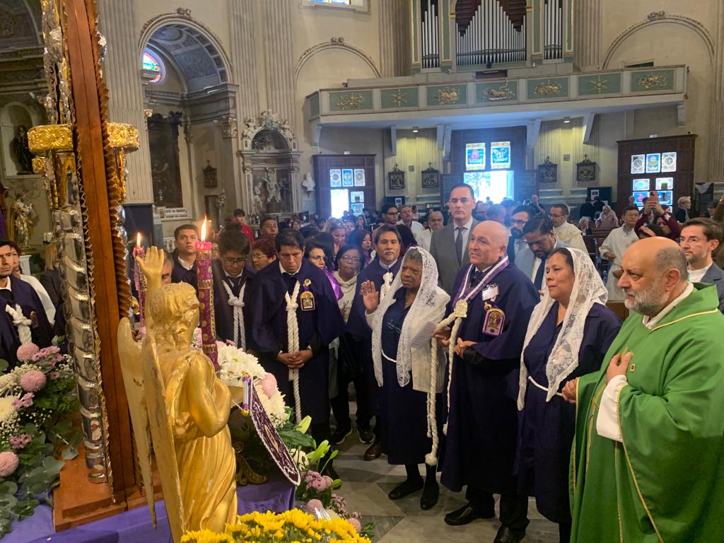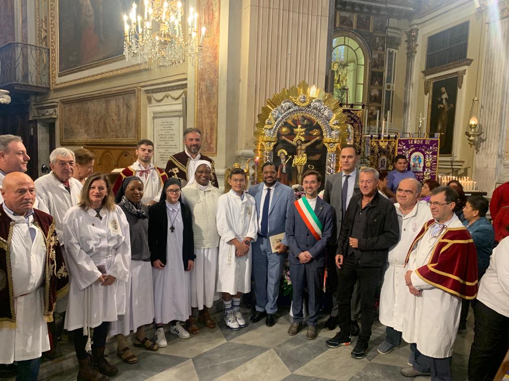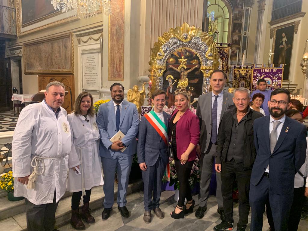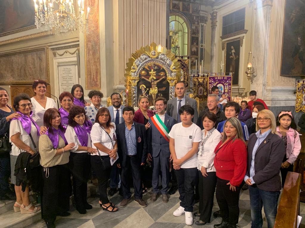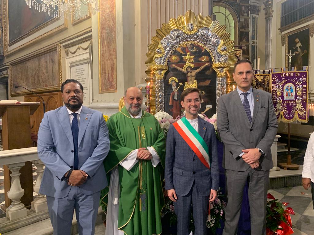 Luego para proseguir con una misa, en la Iglesia San Giovanni Battista celebrada por el Director diocesano de la Curia pastoral de los migrantes Don Edmondo en colaboración con la Hermandad del Señor de los Milagros de Loano, en la persona de Carol Figueroa Presidente, Angely Zea Vicepresidente, directiva socios.