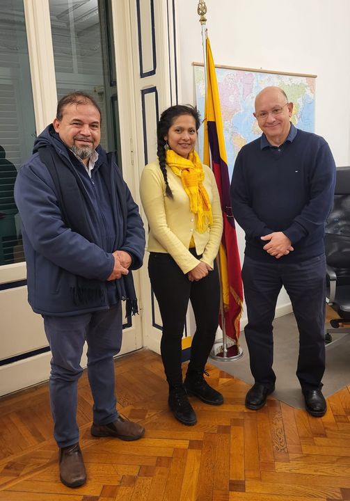 Nella foto, da sinistra a destra: Antonio Garcia, presidente dell’USEI-APS, Lidia Castillo, rappresentante per Genova dell’USEI-APS e l’Ambasciatore Gustavo Palacio Urrutia, Console dell’Ecuador a Genova.