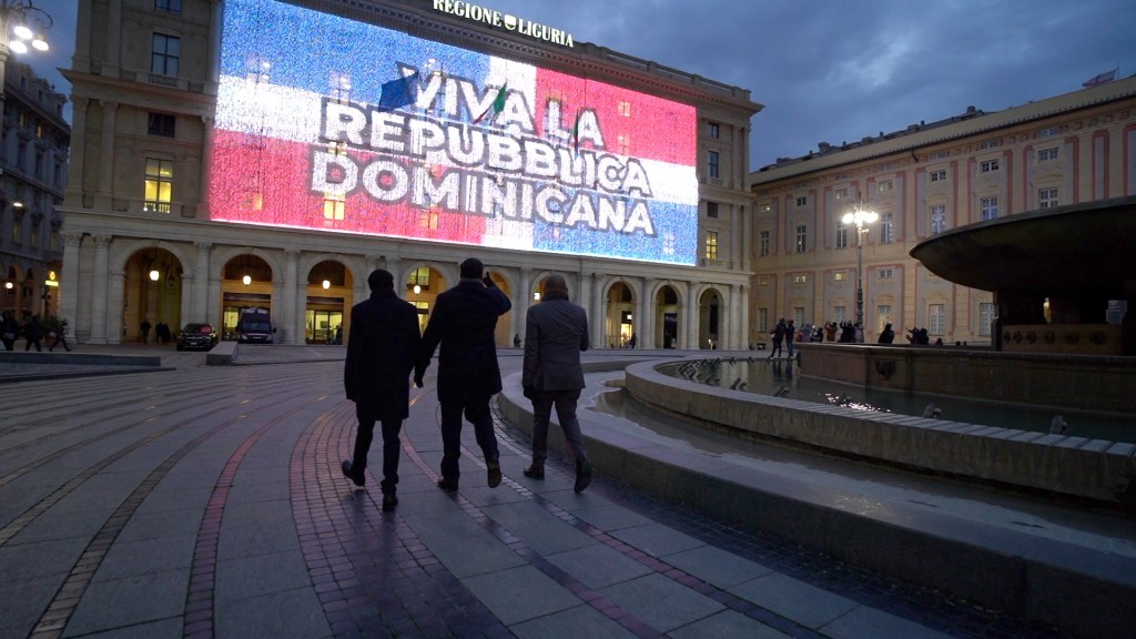 Con los colores patrios azul, blanco y rojo se vistió el Palacio de Región Liguria en la ciudad de Génova, por el fuerte e importante legame histórico que une las dos naciones. No solo por la llegada de Cristóbal Colón, al país caribeño, sino que esta ciudad hospita el primer consulado dominicano en el exterior y los grandes aportes hechos por los italianos en especial los genovéses en la República Domicana. Tal es el caso como el General Cambiaso un génoves que encabezó y dirigó la única batalla de mar en la Independencia, mismo que fue fundador de la Marina militar de la nación.