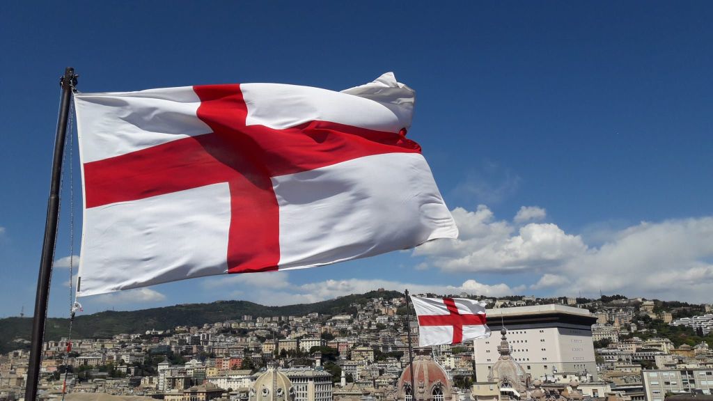 Sin abundar mucho en la extensa historia que representa la Bandera, podemos destacar que inicialmente fue un recurso usado por peregrinos que se dirigían a lugares de la cristiandad. Cruz Roja en el centro con fondo blanco se tiene conocimiento cierto que era ya usada al inicio del año 1095 y desde el 1113 en el período medieval el Santo San Giorgio acompañado de su dragón protegía los soldados desplegados en las cruzadas en medio oriente. Era tal la imponente presencia de la Bandera que solo con su ventilar al enemigo hacían escapar. Característica que empujó a Inglaterra, país potencia colonial europea a solicitarla ‘prestada‘ para proteger su propia flota naval en el mediterráneo y el mar negro. San Giorgio protege los ingleses a partir del 1190.