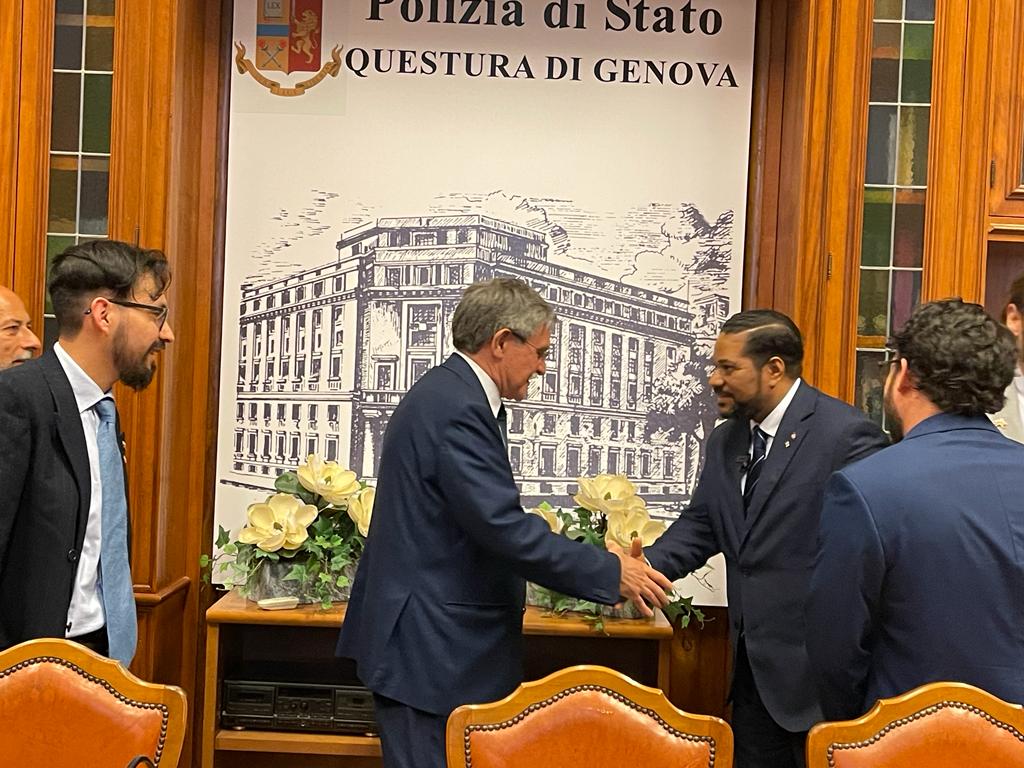 En la reunión mantenida por el Viceministro fue en la Jefatura de Policía de Génova donde el Dr. Orazio D’anna fue recibido por el Jefe de Policía de la Ciudad de Génova. Este último reiteró la excelente colaboración que existe entre las instituciones, no es casualidad que en las semanas anteriores se haya realizado en el Centro Cívico de Buranello una conferencia sobre diversos temas referentes a los permisos de residencia y legislación migratoria a cargo del Director de la Oficina de Inmigración Dr. Giuliani junto con el Comisionado Jefe Dr. Federici.