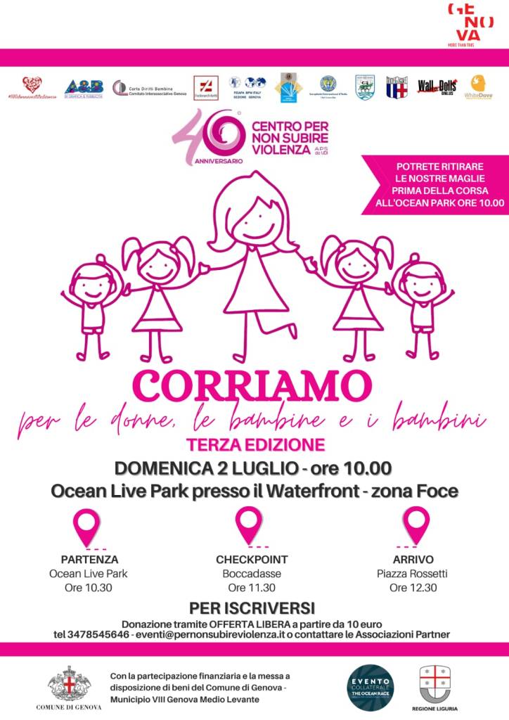 “Corriamo per le donne, le bambine e i bambini” del Centro Per Non Subire Violenza TERZA EDIZIONE – Domenica 2 luglio ore 10.00 evento collaterale di The Ocean Race Genova – The Grand Finale