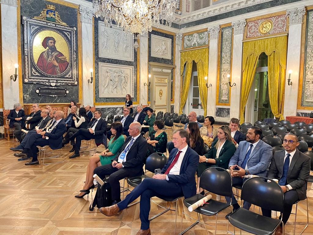 En la Sala de Representación en el Palacio Tursi, el presidente del Ayuntamiento de Génova, Carmelo Cassibba, se reunió con los presidentes de los consejos municipales de las capitales regionales y provinciales. Invitados de Honor, delegación Dominicana encabezada por el Lcdo Nelsón Carela Luna Cónsul General de la República Dominicana, la Presidenta del Ayuntamiento del Distrito Nacional Liz Mieses, acompañada del Lcdo. Joan Leyba Mejía Asesor .