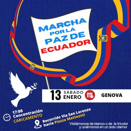 Diversi attori sociali ecuadoriani a Genova organizzano fiaccolata per la Pace in Ecuador.