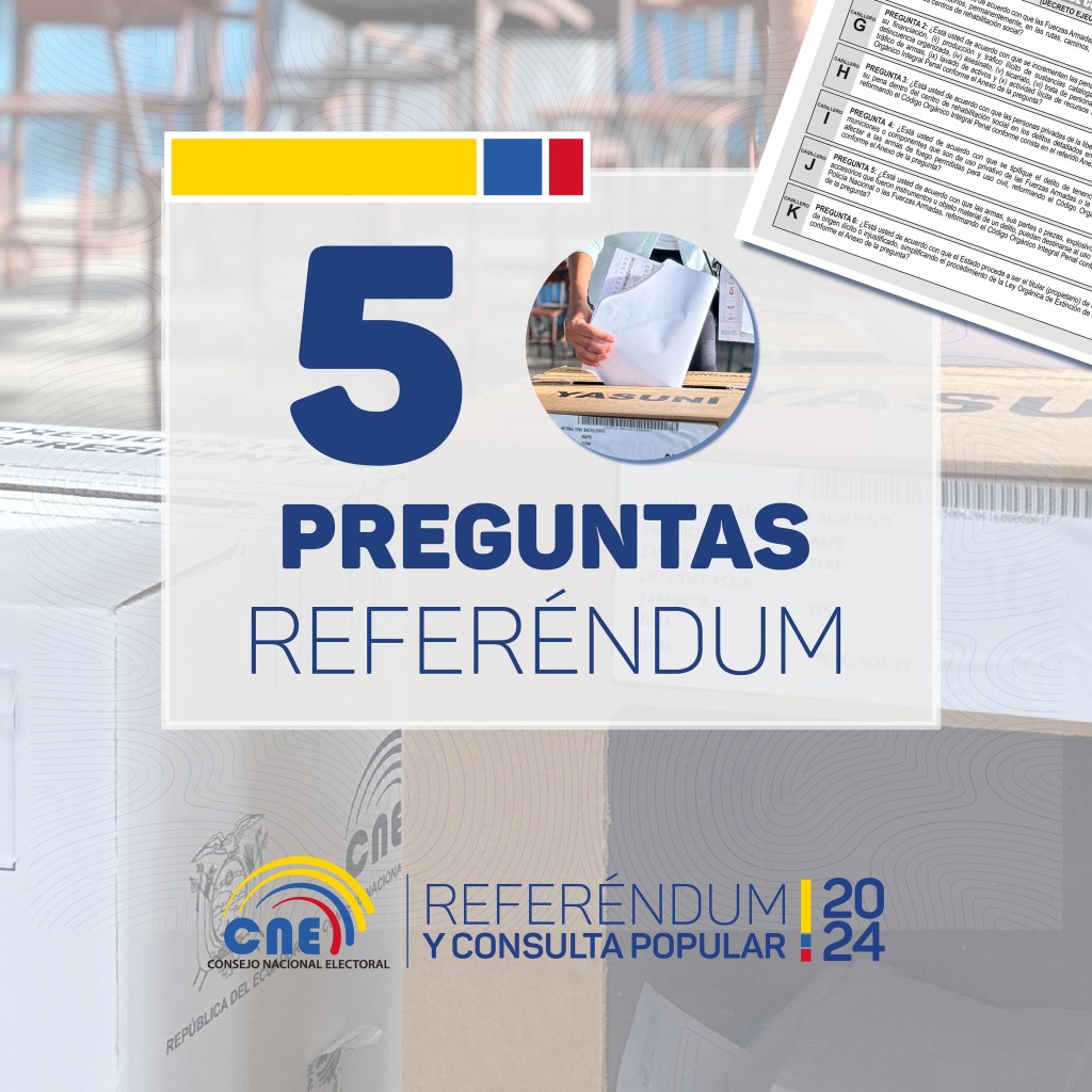 Il Consiglio Elettorale Nazionale (CNE) dell’Ecuador ha approvato i progetti delle schede elettorali, i documenti e i materiali necessari per il ‘ Referendum e la Consulta Popolare del 2024. In una scheda elettorale, ci saranno le 11 domande, 5 di referendum e 6 di Consulta Popular