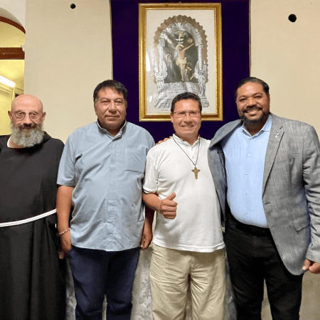 La Hermandad del Señor de los Milagros organiza saludo a Padre Daniel Coronel, presente Cónsul General Dominicao Nelson Carela.