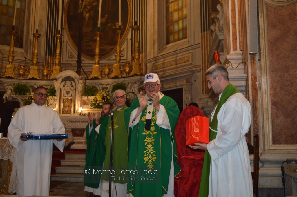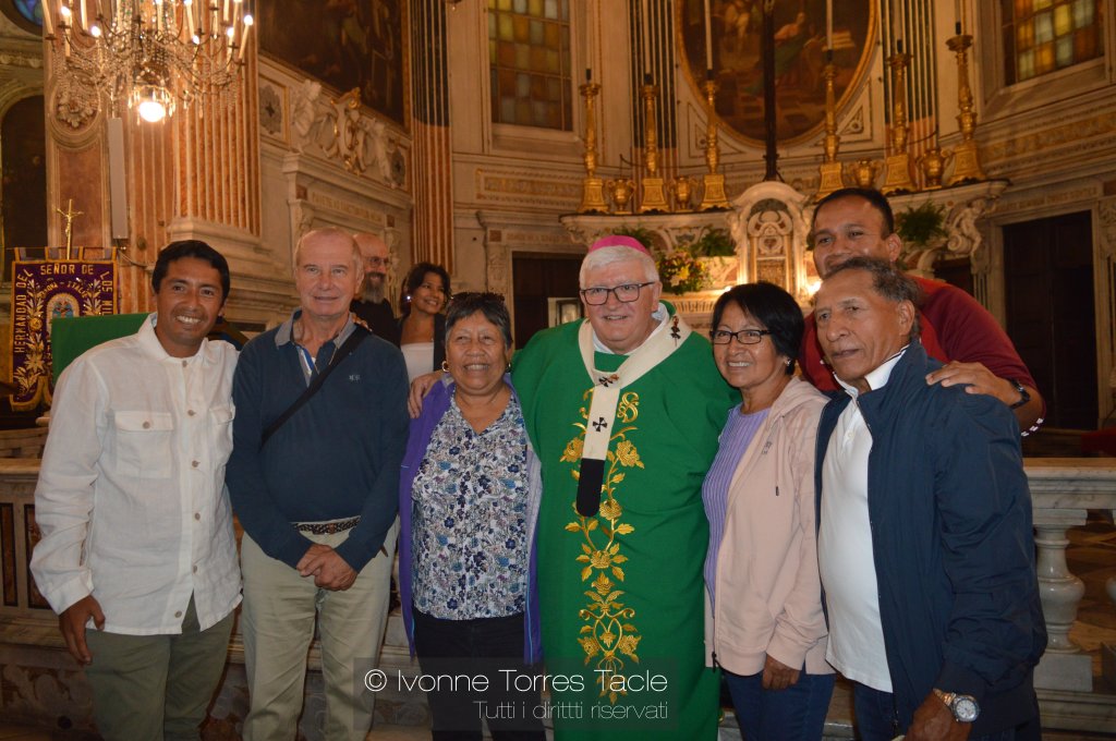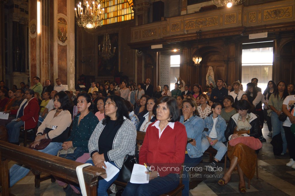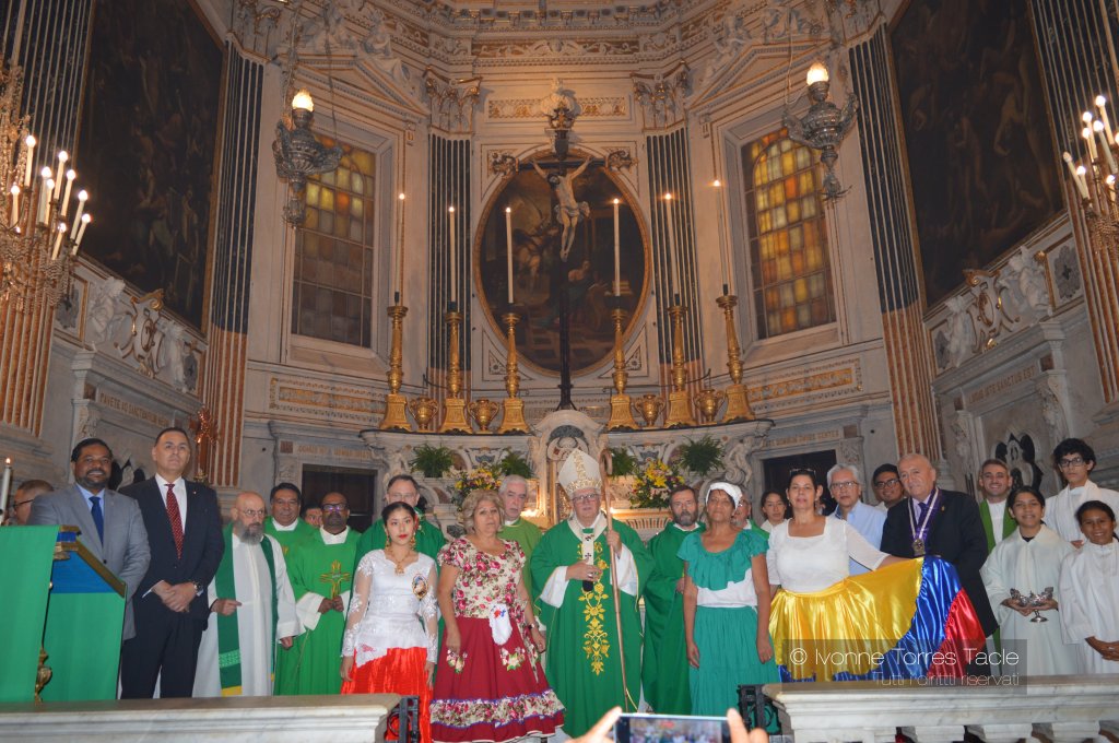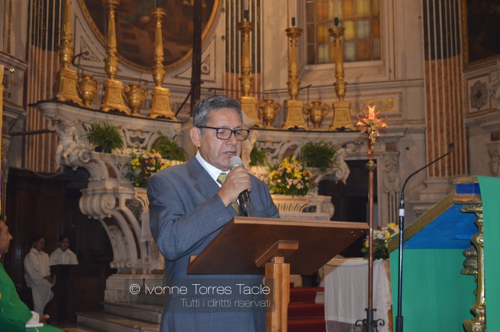 Padre Vittorio Casalino Responsable de la Curia Pastoral comunidad Latinoamericana, comenta. ‘ Doy la bienvenida a cada unos de ustedes, muy contento porque la misa es celebrada por el Cardenal Marco Tasca, a todas las autoridades consulares presente, es importante señalar el empeño de la comunidad latinoamericana, que viene de muchos países, que han encontrado en Italia una armonía através de la fe, la única que es basada en nuestro señor Jesucristo, además muchos de ellos, han encontrado un punto de referimento en esta Iglesia Santa Caterina’