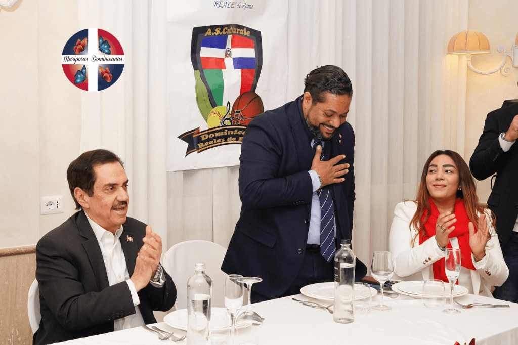 En la ciudad de Roma, se celebró una cena en honor al Embajador de la República Dominicana en Italia, S. E. Tony Raful, y al Lic. Nelson Carela Luna, Cónsul General de la República Dominicana. El evento fue organizado por el Sr. Bladimir Mercedes, Presidente de la Asociación Deportiva y Cultural Los Reales, y la Sra. Elisa Almontes, Presidenta de la Asociación Mariposas Dominicanas en Roma.