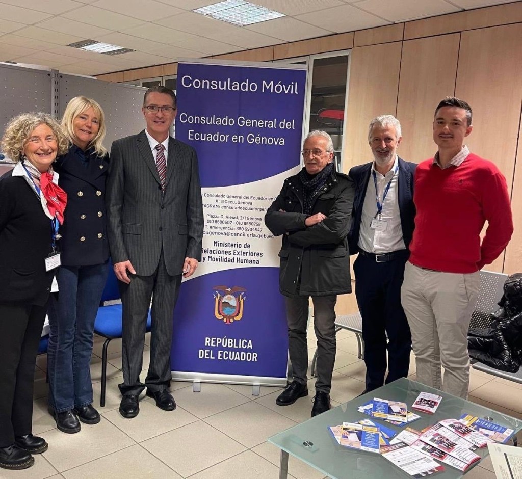 El sábado 22 de marzo de 2025, el Consulado General del Ecuador en Génova, liderado por el Ministro Oscar Izquierdo, realizò con gran éxito un Consulado Móvil en la ciudad de Sanremo, en el URP de Palafiori, ubicado en Corso Garibaldi. Esta iniciativa, realizada en colaboración con el Municipio de Sanremo, fue diseñada para acercar los servicios consulares a los ciudadanos ecuatorianos que tienen dificultades para viajar a Génova.
