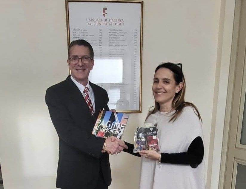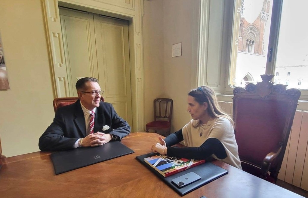 El primer Encuentro lo mantuvo con la Alcaldesa de Piacenza Katia Tarasconi, en el Palacio de la alcaldía, más conocido como ‘ Gotico’ ,al este envuentro participó Andrea Pasquali, portavoz de la alcaldesa.