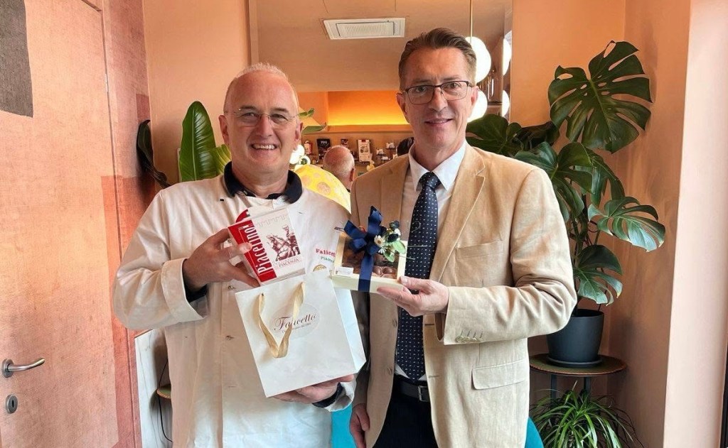 En horas de la tarde, el Cónsul visitó la pastelería Falicetto junto con Francesca Castellanos, representante de la marca ecuatoriana Paccari, reconocida mundialmente como “el chocolate más premiado del mundo”. Durante esta visita, se realizaron degustaciones de diferentes variaciones del chocolate Paccari y se destacaron los beneficios del uso de sus pastas de cacao en las creaciones de alta repostería. Esta colaboración subraya un compromiso compartido con la sostenibilidad, la innovación y la excelencia.