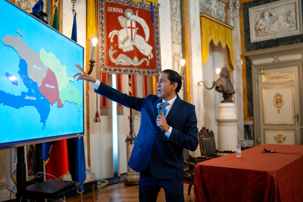 Una Mirada Histórica y Geopolítica a la República Dominicana. En el Palacio Tursi, actual sede del Municipio de Génova, fue el escenario de la destacada conferencia “Una Mirada Histórica y Geopolítica de la República Dominicana”. Organizado por el Consulado General de la República Dominicana en Génova, bajo la dirección del Cónsul General Adolfo Pineda, el evento contó con la participación magistral del Embajador Iván Ernesto Gatón Rosa.
